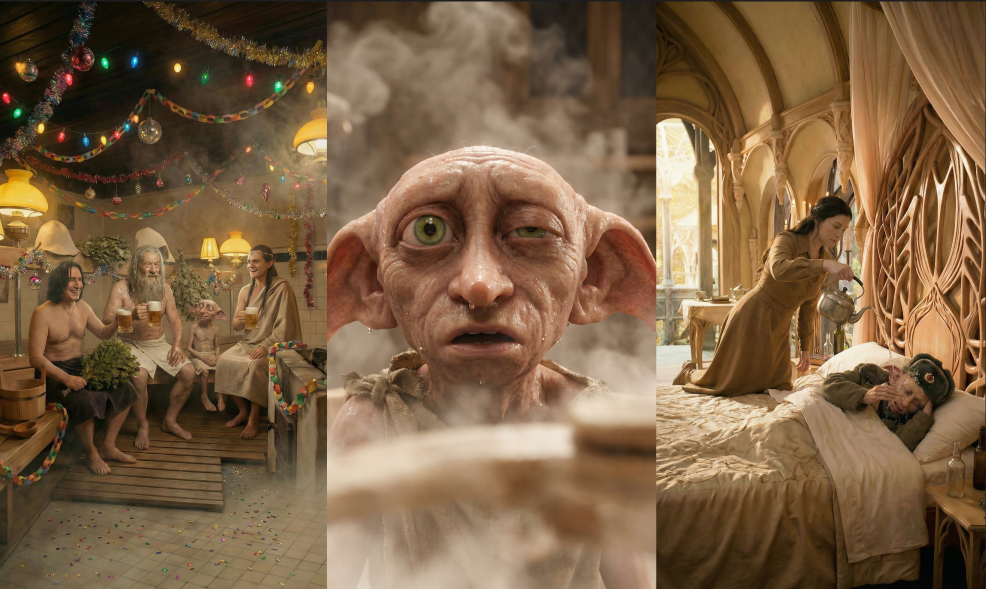 Пародия на Иронию судьбы в мультивселенной Гарри Поттера и Властелина Колец. Сценарий писался без использования ИИ. Юмор - тонкая материя и пока что с этим лучше справляется человек.